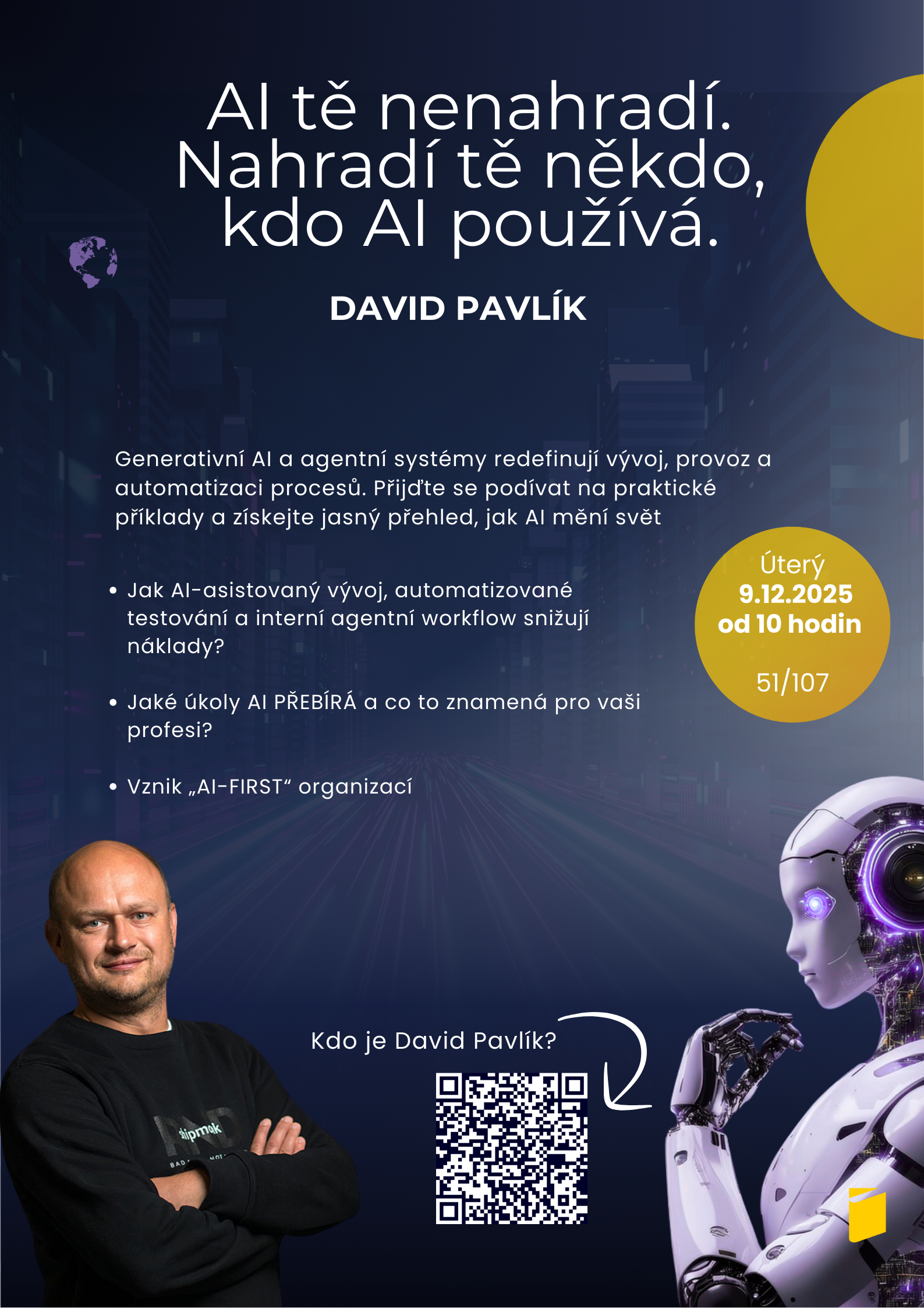Nečekejte, až vás AI předběhne. Přijďte na přednášku Davida Pavlíka!